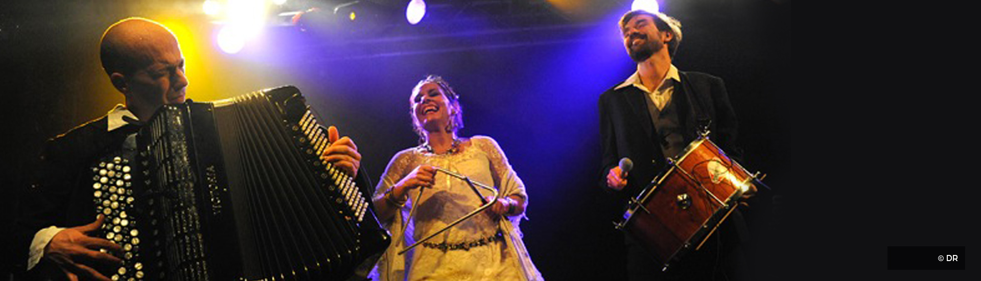Quand une voix chaude et virevoltante venue du Brésil, rencontre le courant frais de la musique bretonne éclate alors une tornade musicale virtuose qui emporte tout sur son passage… Imprégnée de forró, tradition populaire du Nordeste, leur musique aux airs joyeux de fête ou de bals ensoleillés se danse enlacés à deux, en ronde ou en quadrille ! Avec Mariana Caetano (chant), Yann Le Corre (accordéon) et Marcelo Costa (percussions)